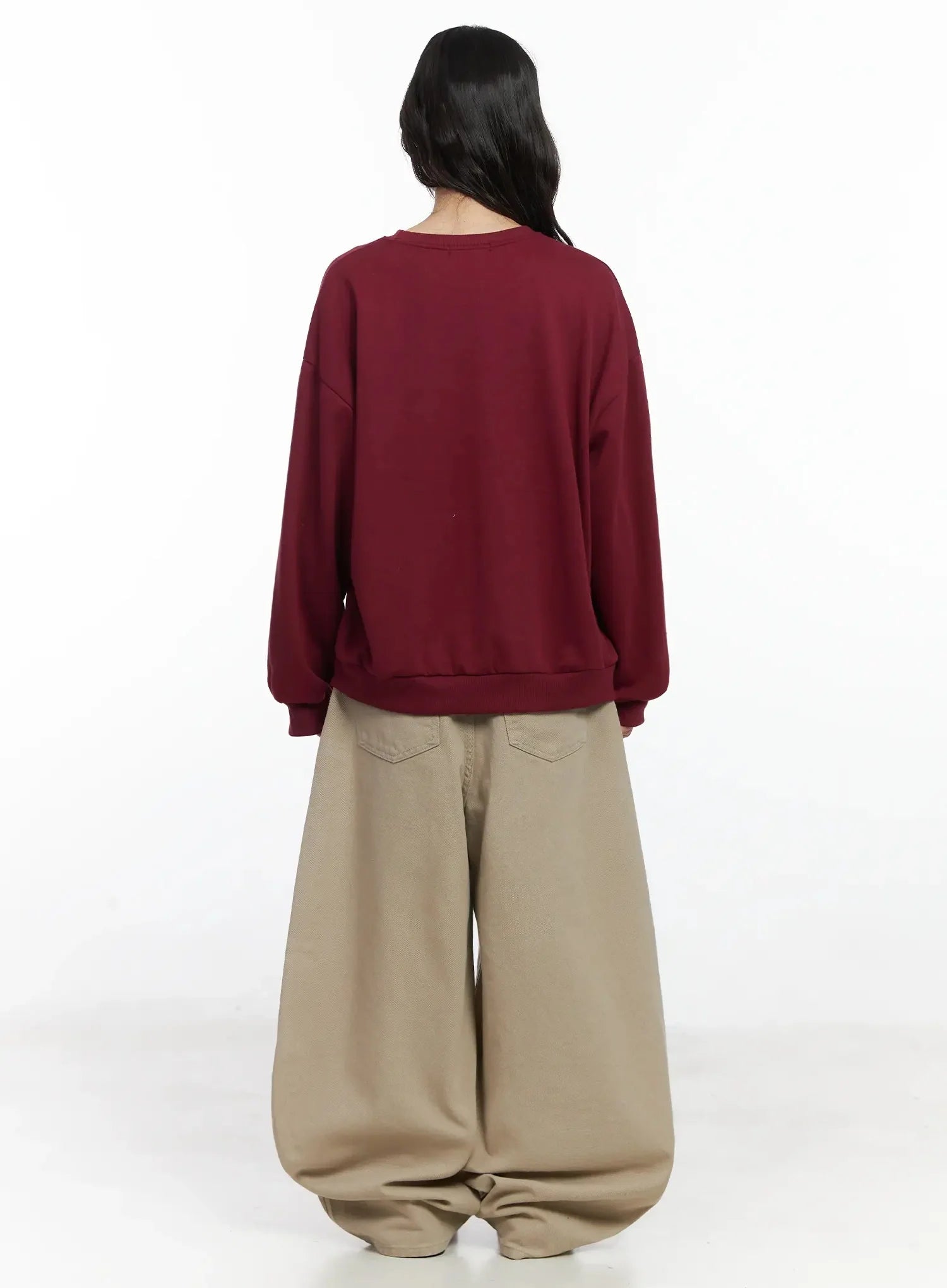 Model is wearing size M and the color Beige.