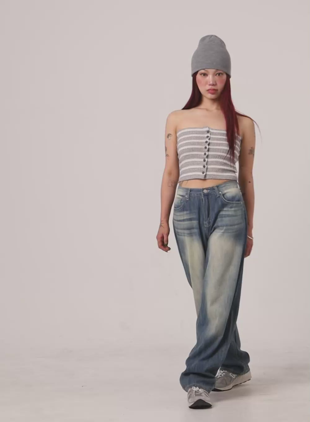 Wide Washed Blue Denim Jeans CY429